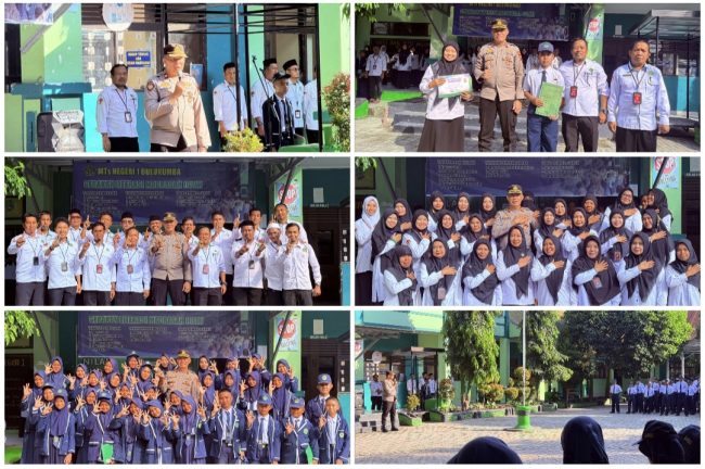 Kehadiran Kapolsek Gantarang di MTsN 1 Bulukumba desa Bontomacinna didampingi Bhabinkamtibmas Aipda Sahabuddin yang disambut Muhammad Asdar, S.Ag, M. Pd. I Kepala MTs Negeri 1 Bulukumba.