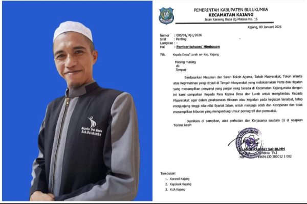 Surat himbauan dengan nomor surat: 005/01/KJ-1/2026 itu ditujukan kepada seluruh Kepala Desa dan Kelurahan di wilayah Kecamatan Kajang.